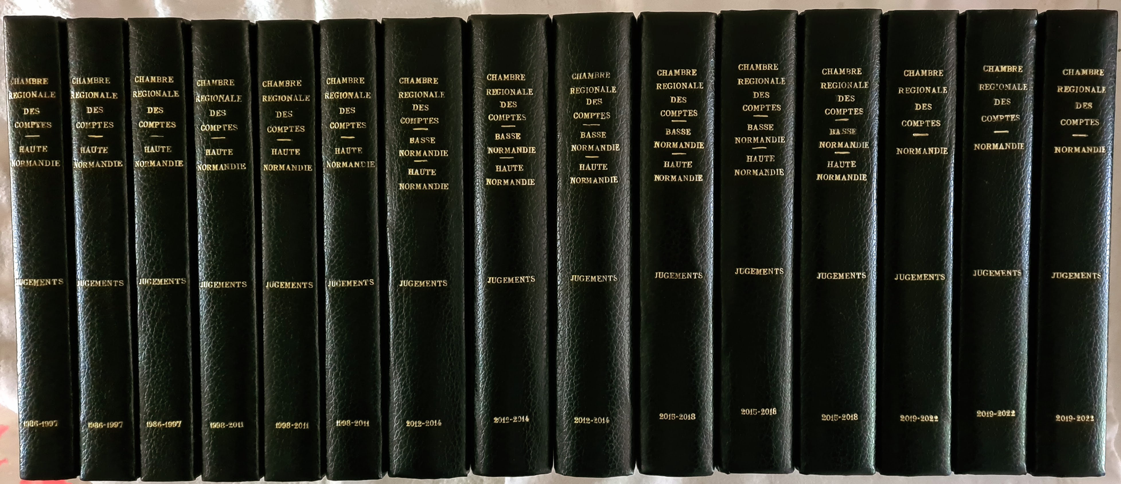 Réalisation de 15 reliures : Jugements de la Chambre régionale des comptes de Normandie.